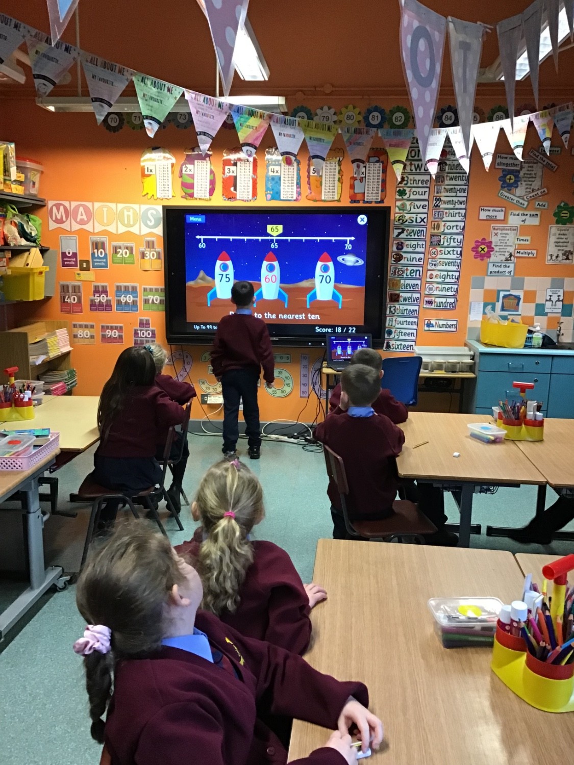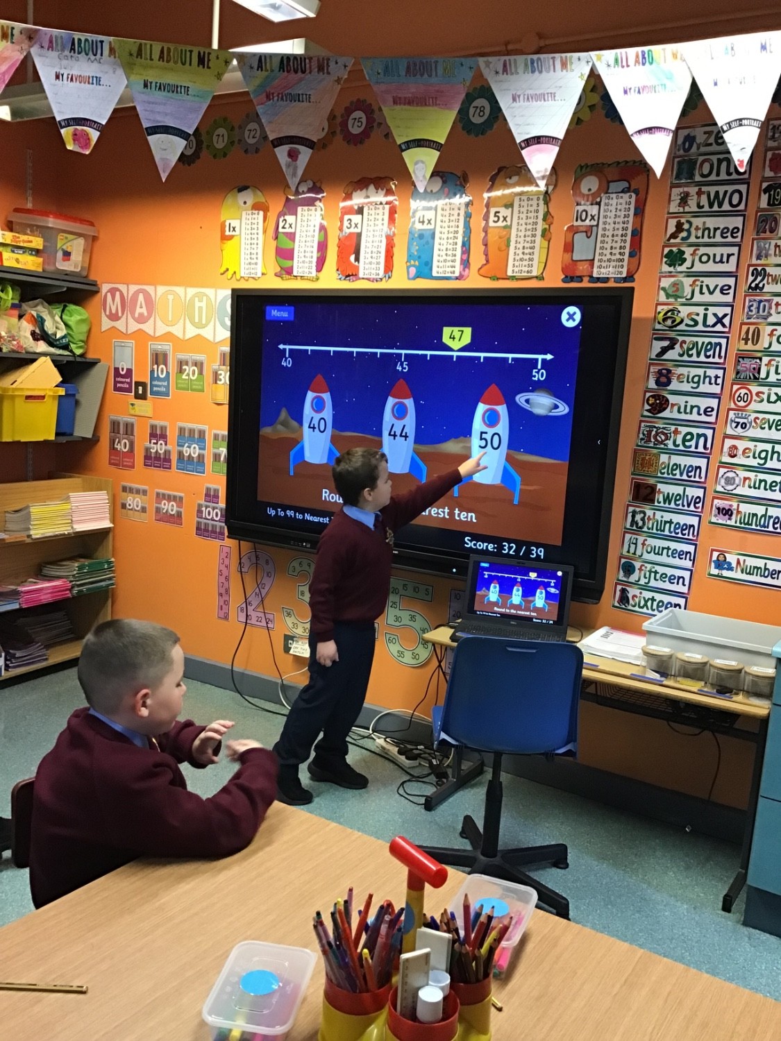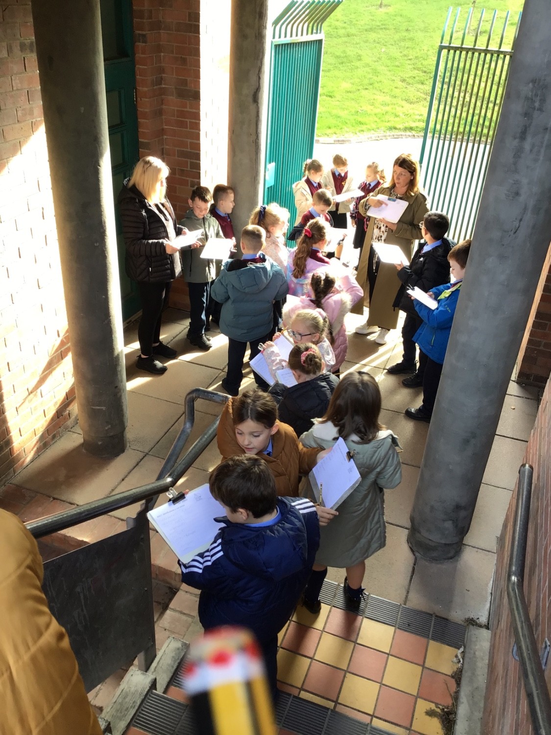 This week Mrs Mc Clean’s P4 class enjoyed some outdoor Data Collection Maths activities linked to “School’s Cool” theme as part of Maths Week. They also enjoyed daily Maths Number Games and Mental Maths games using the interactive board.